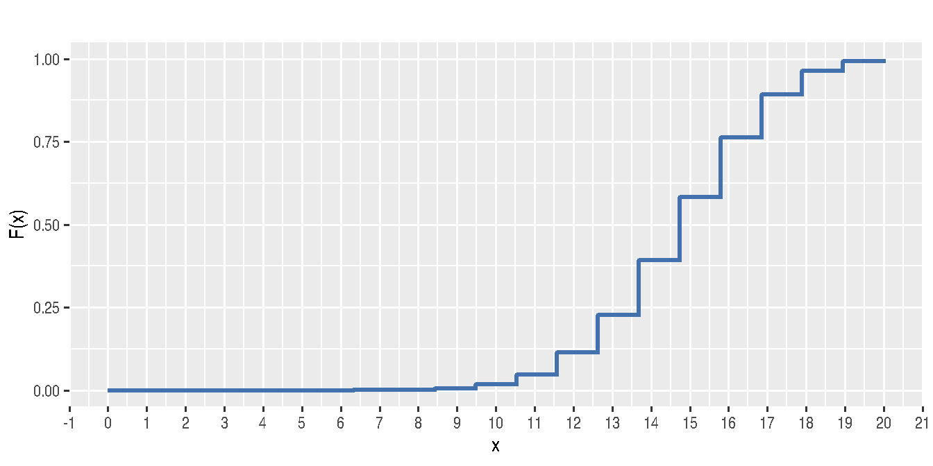 \[F(x)=P(X\leq x)=\sum _{t \leq x}f(t)\]