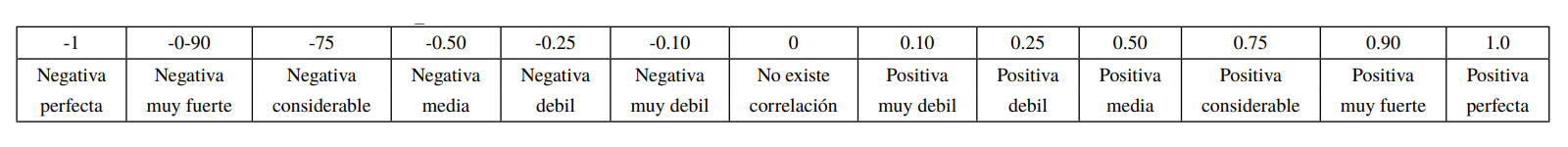 Tabla 2.5 Escala para interpretación para la correlación