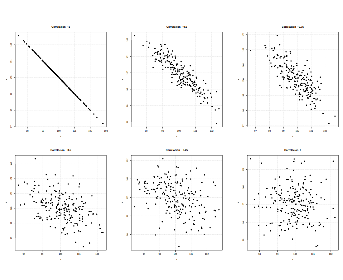 Figura 2. 16 Correlaciones negativas (a) \(\rho = -1.0\). \(\hspace{.5cm}\) (b) \(\rho = -0.90\).