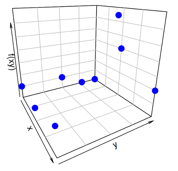 La función que tiene en cuenta efectos múltiples de variables aleatorias se denomina distribución de probabilidad conjunta. esta función puede ser una combinación de variables continua-continua, discreta-discreta o continua-discreta, dependiendo del experimento, en el caso bivariado.
