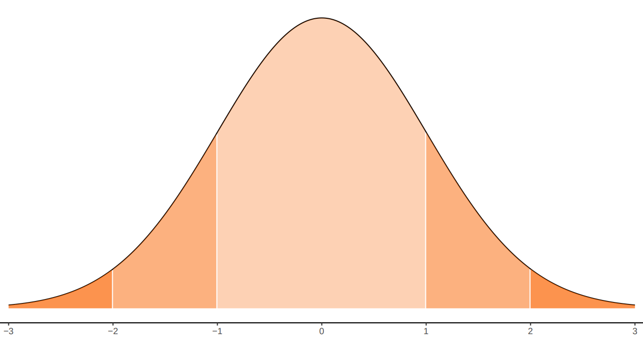 Aproximadamente el 99.7% de la población se encuentra en el intervalo centrado \[(\mu - 3\sigma ; \mu + 3\sigma)\]