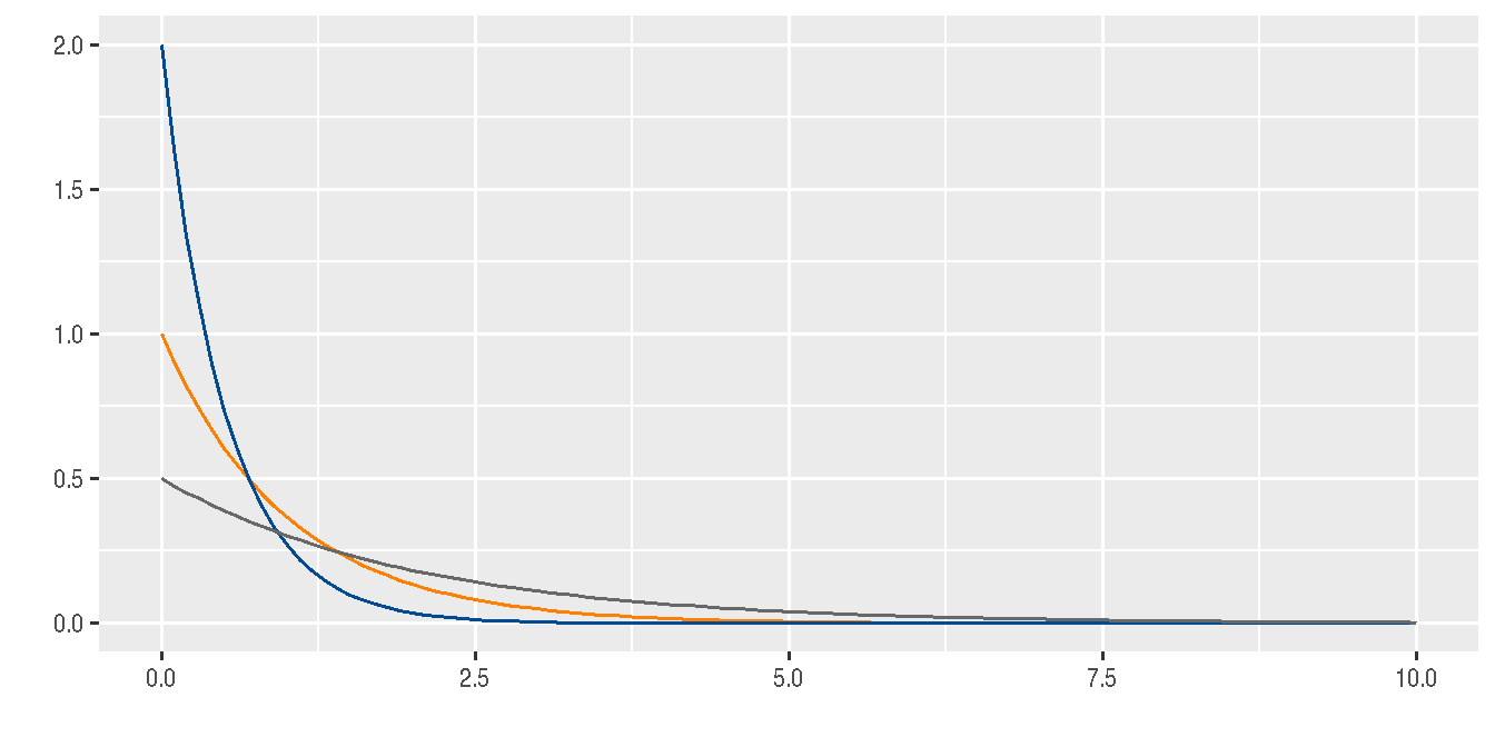 \[\begin{equation*} f(x)=\left\lbrace \begin{array}{lll} \lambda e^{-\lambda x} &,& x > 0 \\ &&\\ 0 &,& x \leq 0 \end{array} \right. \end{equation*}\]