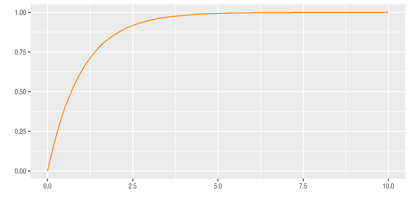 \[F(x)=P(X \leq x)=1-e^{-\lambda x} \hspace{1cm} x > 0\]