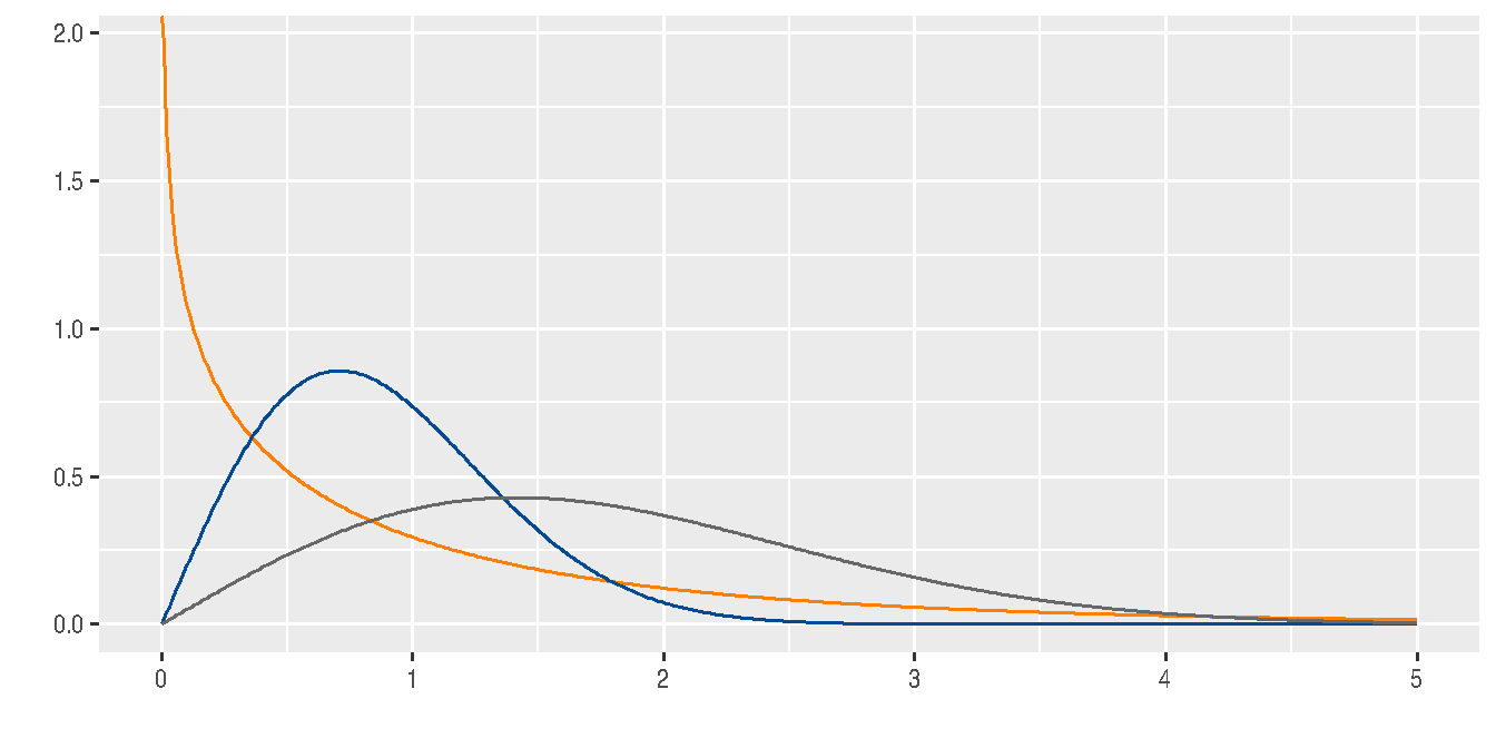 Figura 2.29 Función de densidad gamma \(X\sim gamma(x,