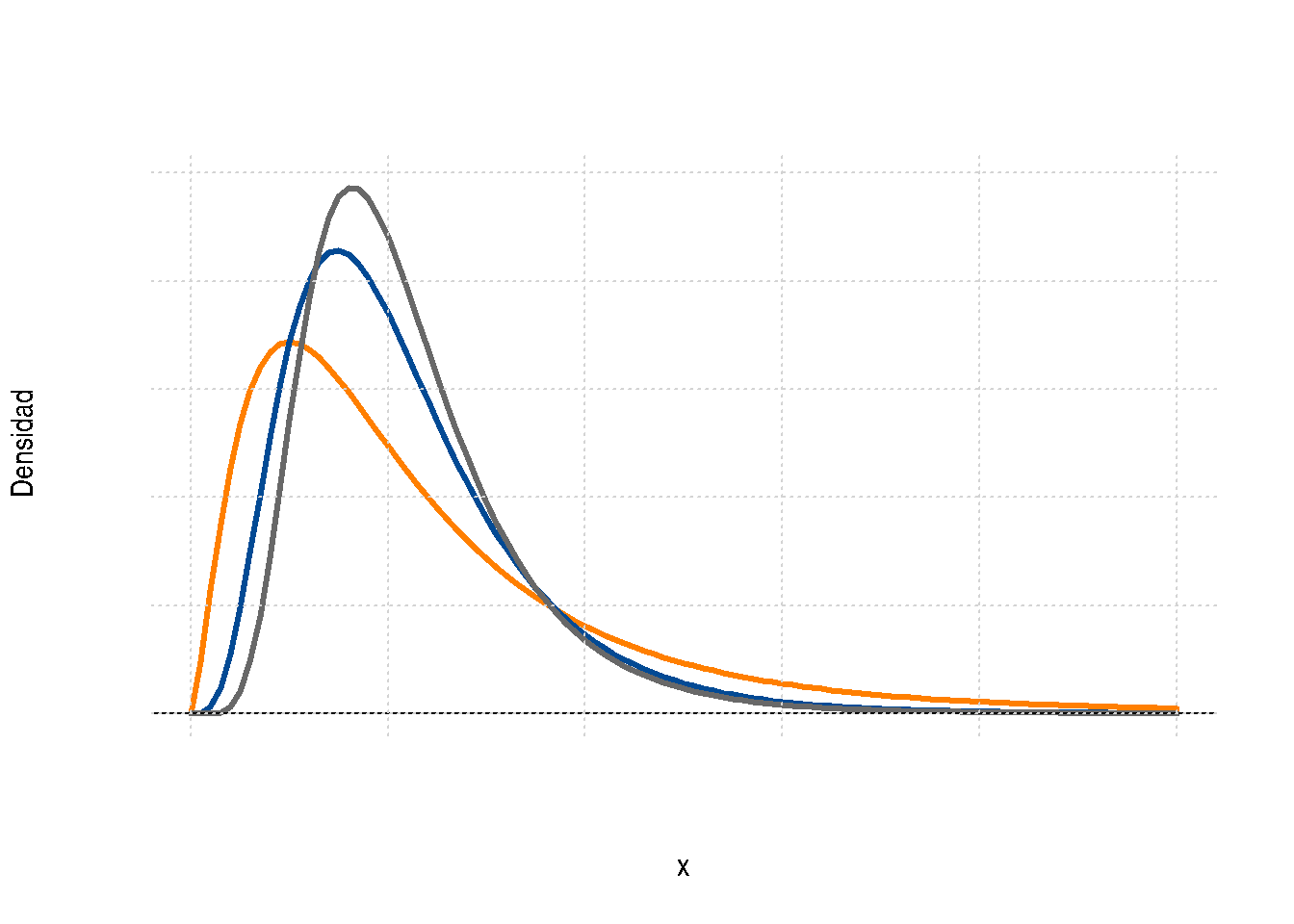 Esta distribución es un caso especial de la distribución Gamma con parámetros \(\alpha=\frac{v}{2}\) y \(\beta=2\)