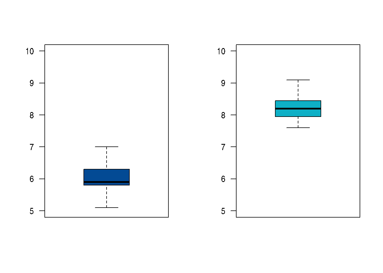 boxplot(grupo2, las=1, col=c3, ylim=c(5,10))